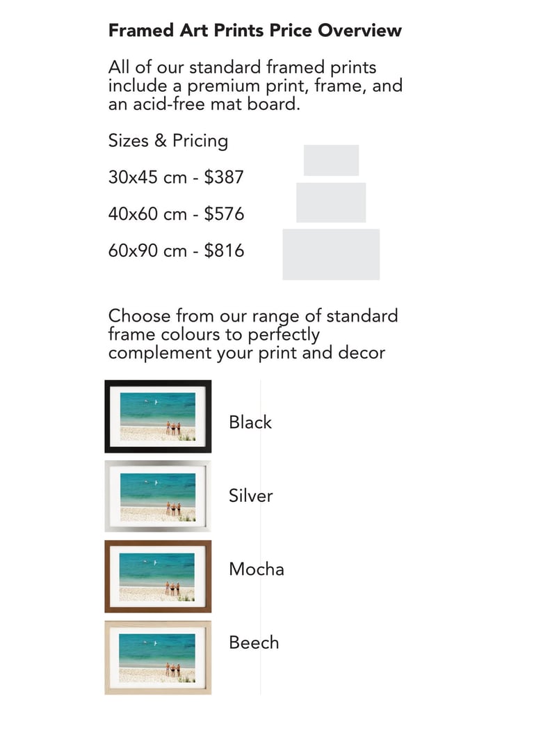 Ordering is simple: select your favourite image, choose the size and frame, and your artwork will be made to order.